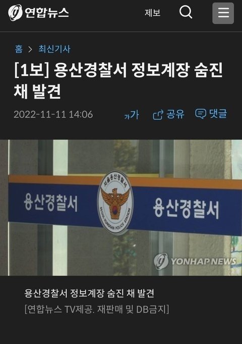 오늘 11일 서울경찰청 관계자는 용산경찰서 정보과 A. 2 days ago이태원 참사 당시 용산경찰서 정보계장 A씨가 자택에서 숨진 채 발견됐다. 11일 경찰에 따르면 용산경찰서 정보과 정모 계장이 이날 낮 12시 45분 자택에서 숨져 있는 것을 가족이 발견해 경찰에 신고했다.